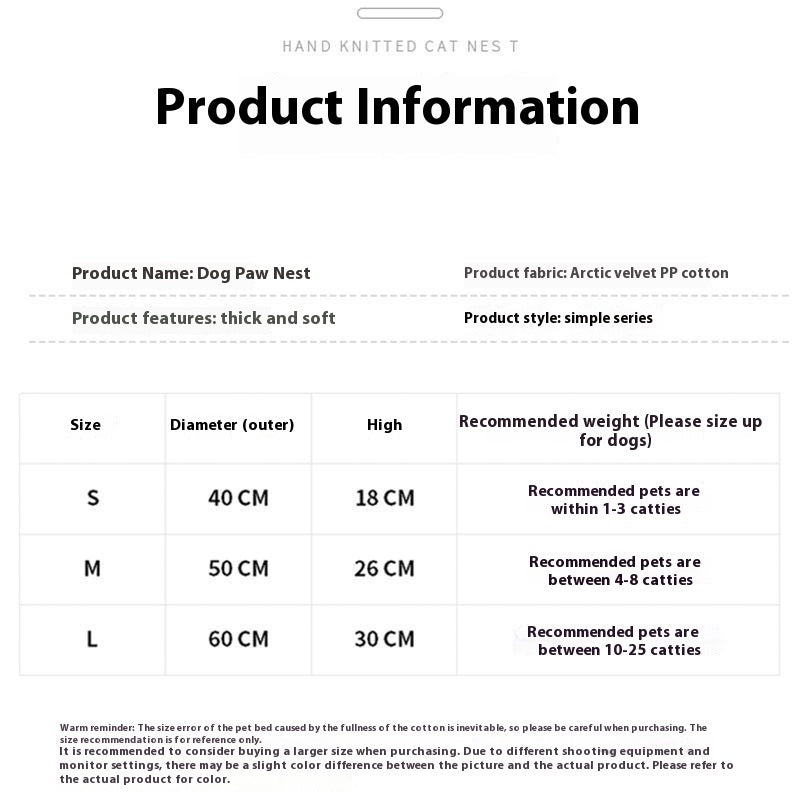 Product information: Color: S-diameter 40cm (used within 3kg),M-diameter 50cm (used within 10kg),L-diameter 60cm (used within 23kg) Applicable objects: Other Specifications: pink, brown, green, gray, red, black, blue
